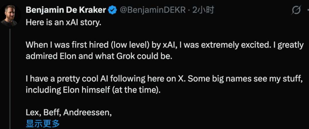 创始东说念主的密集下野勾画出的是高层的飘荡,但一位前职工Benjamin De Kraker近日在X上发布的长文爆料则揭开了另一个层面的问题。