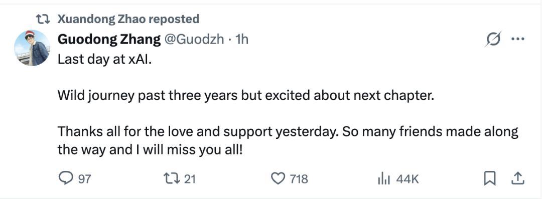 Guodong Zhang刚刚晓示下野。他在xAI的位置更为重要,他平直向马斯克讲述,贯注Grok Code和Grok Imagine两大中枢产物线。
