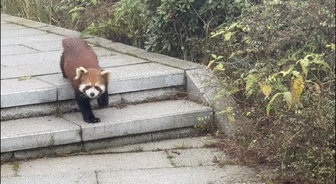 9月8日上昼11时许,有搭客在峨眉山万佛顶区域登山时,不测相遇一只正在步履的小熊猫,当发现存东说念主在拍摄它的泛泛,小熊猫竟绝不怯方位冲镜头露个脸,然后淡定走开,其俏皮可儿的样式引得搭客驻足。